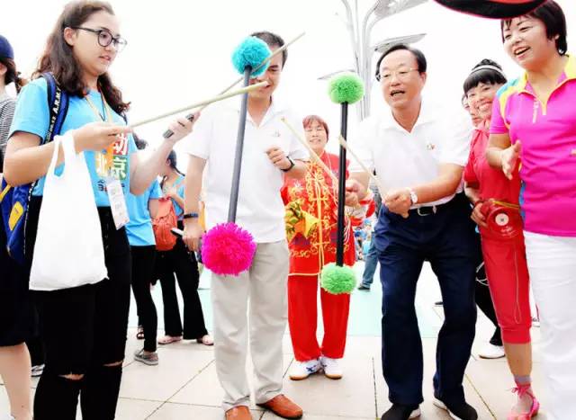 全国政协教科文卫体委员会副主任、北京奥运城市发展促进会常务副会长刘敬民出席活动,并与这些来京参与“欢动北京”第六届国际青少年文化艺术交流周的青少年们,共同体验了空竹、花棍、风筝制作、抽陀螺等多项中国传统体育项目。