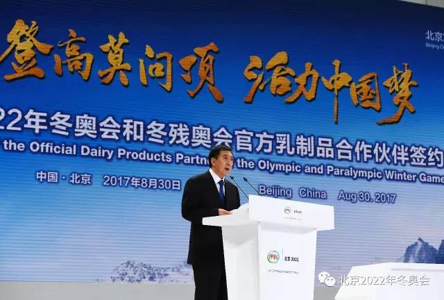 8月30日上午,伊利集团与北京冬奥组委签署赞助协议,成为北京2022年冬奥会和冬残奥会官方乳制品合作伙伴。北京市委副书记、代市长、北京冬奥组委执行主席陈吉宁出席签约仪式。
