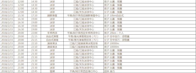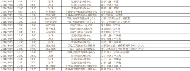 2018年平昌冬奥会组委会日前公布了2018年平昌冬奥会赛程,明年的2月9日至25日将在韩国平昌郡举行。届时,约有2900名运动员参加这场为期17天的冰雪盛会,比赛共分7大项15个分项以及102个小项,设有13座比赛场馆和3座训练场馆。