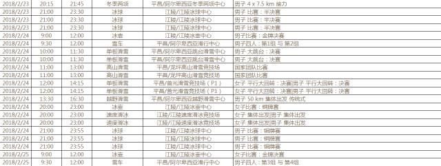 按照赛程,平昌冬奥会开幕式将于2月9日晚7点举行。首金将在2月10日越野滑雪中产生。