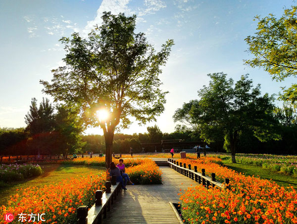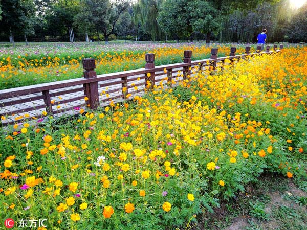 2017年9月24日,奥林匹克森林公园秋季波斯菊展,百亩菊花竞相开放。一派迷人的秋色。
