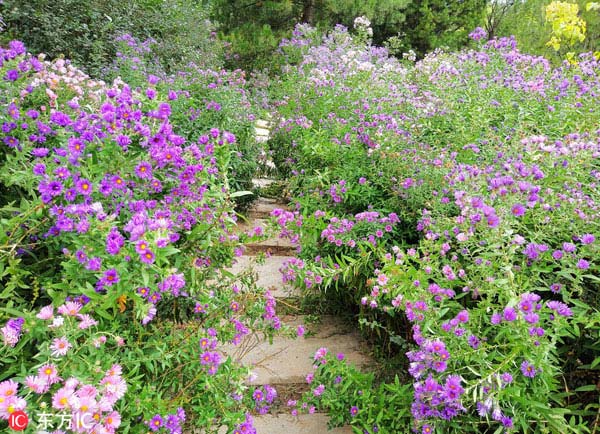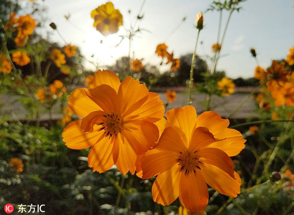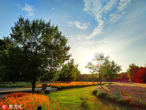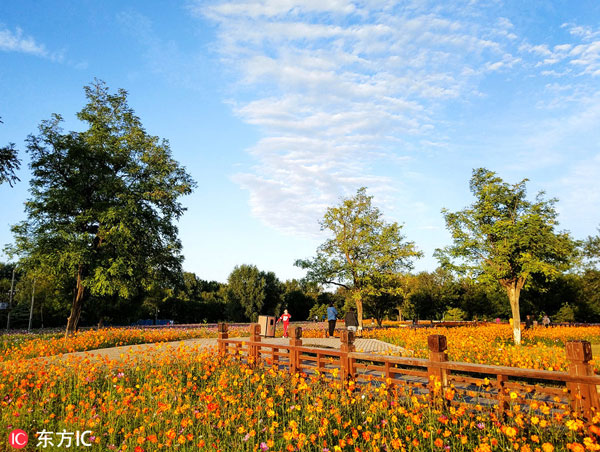 2017年9月24日,奥林匹克森林公园秋季波斯菊展,百亩菊花竞相开放。一派迷人的秋色。