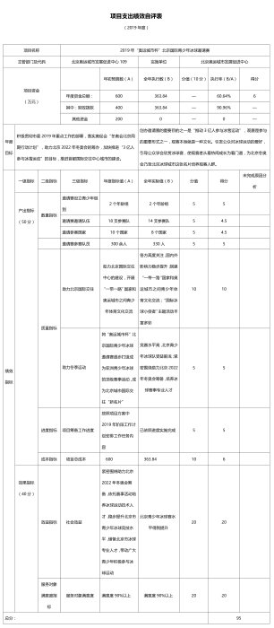 项目绩效目标全部完成。展览面积、观众人数、展商数量、媒体报道数量等均达到预定目标。项目成本严格按预算执行,预算中未包括的道旗、地铁广告宣传费用由自筹资金解决。项目实施进度按预定计划逐步实现,最终展会成功举办,实现了促进实现“三亿人上冰上雪”,及带动冬季运动产业、冬季旅游及服务产业发展的社会效益和经济效益。客户、合作伙伴、观众满意度达到90%以上。