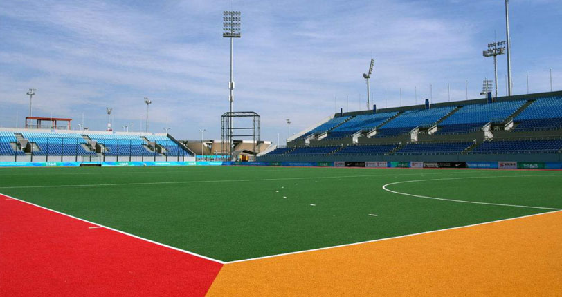 曲棍球场建设负责人介绍说:“作为奥运的曲棍球比赛场地,在球场的渗水、保水性能,球的反弹性能,场地脚底的摩擦力,球的滚动性能以及滚动偏向等多方面都有明确的要求。其中,球场既要渗水又要保水的双重要求给施工提出了新的考验,按照要求,球场在洒水35分钟后,表面平均保留3毫米水量,而且任何一处的水量不得少于2毫米。为此,施工人员采用了二灰土、粗沥青、中沥青、草坪吸震层、人工草坪的五层铺设法,从而通过了国际曲联的考核,达到最高级认证标准。据悉,该场馆建成后,将成为国内最高水平的曲棍球场地”。在设计之初,曲棍球场的每个看台残疾人双向坡道、造型别致的淋浴间和110个卫生间装饰。在施工期间,工期十分紧迫的情况下,施工方将曲棍球场宽1.2米的观众疏散口改为1.8米等等,也很好地诠释了“人文奥运”的建设理念。此外,由于曲棍球工程的作业方式为多专业、多工种、多队伍,穿插作业,这就给现场总指挥总协调增加了难度,也给后勤服务提出了严峻的考验。施工方住总集团二公司奥运项目部严格履行各种规章制度,对农民工的食宿问题高标准和严要求,最大限度的改善农民工的生活条件,为前方作战提供坚实的保证。一是设置标准的生活区,卫生室、活动室和太阳能浴室,设专人每天打扫清理。卫生间每天喷洒消毒液;二是关爱民工健康,举行大型医疗义诊活动;三是建立农民工夜校,坚持每月两次的学习培训;四是制定并实施《外施人员生活区管理办法》、《生活废弃物管理办法》和《食品卫生,预防食物中毒细则》;五是对所有农民工全部实行实名制,具备胸卡、暂住证和工人等级证,做到规范化、制度化。