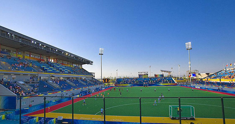 奥林匹克公园曲棍球场主要由曲棍球A场、曲棍球B场、14栋附属建筑物、看台、各种辅助停车场、道路和设施组成。曲棍球A场位于用地中心西面为决赛比赛场地,观众容量12000座;曲棍球B场位于用地中心东面,为预赛场地,观众容量5000座。[7] 奥运会期间的用途为举办奥运会男子曲棍球(12支队)女子曲棍球(10支队)比赛;残奥会期间的用途为举办残奥会五人制、七人制足球比赛。作为2008年第29届奥运会曲棍球的比赛场馆,这里产生男女曲棍球2枚金牌。