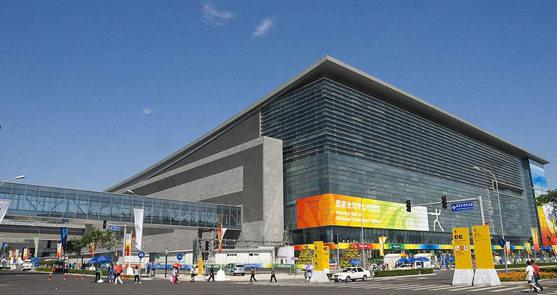 国家会议中心主体部分的设计融入了中国传统建筑中屋檐和拱桥的设计元素。从正面看去,建筑的屋顶部分采用4角微微上翘的的结构,好似中国传统的屋檐,下方则形成一条向上拱起的弧线,形似中国传统的拱桥。