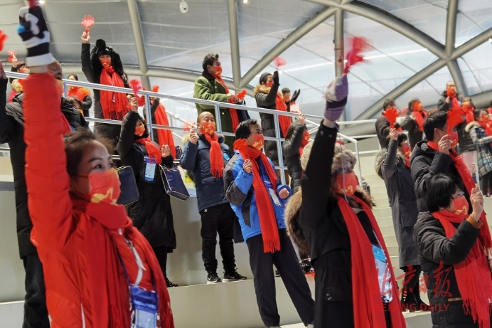 11月20日晚7时20分,更令人欣喜的时刻来临,男子单人雪橇项目正赛期间,“雪游龙”迎来首批约300名观众,这是2021年下半年“相约北京”系列冬季体育赛事进行的首场带观众测试。这些观众都来自延庆当地,能够进入北京冬奥会赛场“雪游龙”现场观看雪橇世界杯比赛,很多观众都十分兴奋,他们拿着助威棒为运动员们加油助威,掌声与喝彩声交织在一起。这样世界顶级的冬奥会场馆本身就很震撼,夜晚的“雪游龙”更是光彩夺目,他们所有人都是第一次走进北京冬奥会的赛场,他们无不对这样的场馆发出惊叹。同时,他们为现场第一次能够欣赏到世界高水平的雪橇世界杯赛事而兴奋。说实话,不要说这些现场延庆的观众,全中国观众也没有多少人能够在现场观看雪橇世界杯比赛。