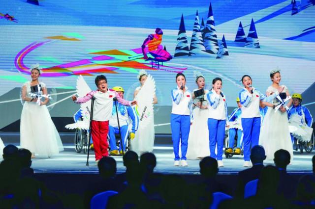 昨日,北京冬残奥会倒计时100天主题活动在国家游泳中心举行。图为节目《点亮梦想》。