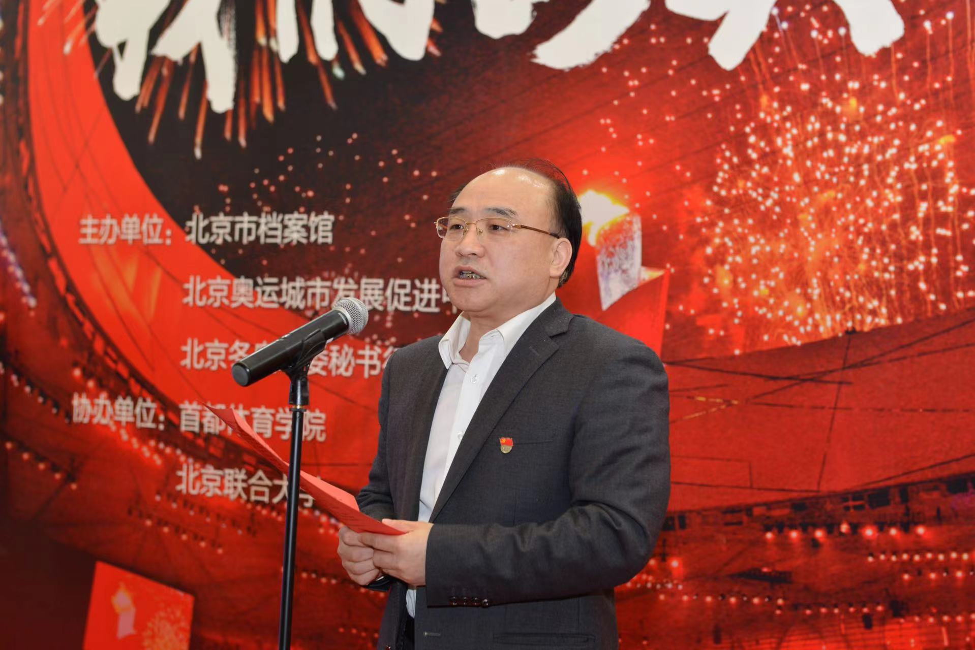12月16日,在北京冬奥会开幕倒计时50天之际,由北京市档案馆、北京奥运城市发展促进中心、北京冬奥组委秘书行政部主办,首都体育学院、北京联合大学协办的“我们的奥运”主题展览在北京市档案馆开幕。北京市档案馆馆长程勇,北京奥运城市发展促进中心党组书记、主任付晓辉,北京冬奥组委秘书行政部副部长罗刚分别致辞。北京联合大学党委书记楚国清,北京市档案馆副馆长李立军、曲安、孙红,二级巡视员郭飞,北京奥运城市发展促进中心党组成员、副主任汲传排,首都体育学院副校长谢军、我国首位奥运冠军,国家体育总局自行车击剑运动管理中心前副主任许海峰等领导和嘉宾出席开幕式。