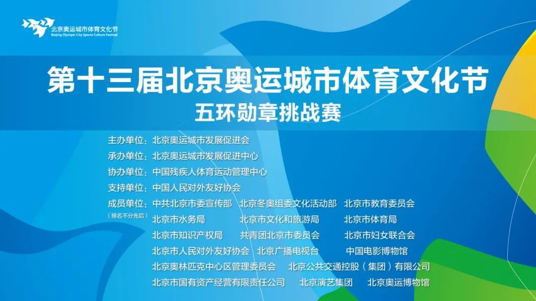 “北京奥运城市体育文化节”由北京奥运城市发展促进会于2010年创办发起,经多年的精心培育和创新发展,现已成为颇具影响力的奥运主题全民健身城市体育文化品牌,参与文化节各项活动的群众已累计超过1500万人次。本年度文化节自8月5日开始以来,创新举办形式,发挥了双奥文化的独特魅力,已陆续举办开幕式、双奥大本营、双奥文化主题活动、第十八届北京国际体育电影周、游泳挑战赛、小铁人三项赛、女子环湖10公里挑战赛、北京台克球挑战赛、奥运友好城市笼式足球邀请赛、驻华外交官笼式足球友谊赛等各具特色的赛事和活动,受到了广大群众的广泛欢迎。本次挑战赛以青少年群体为主要抓手,以双奥赛事为主要活动内容,进一步挖掘双奥遗产潜力,辐射带动广大青少年参与奥林匹克文化体验,这也是本年度文化节充分结合双奥文化,创新文化节形式和内容的再一次有益尝试和缩影。