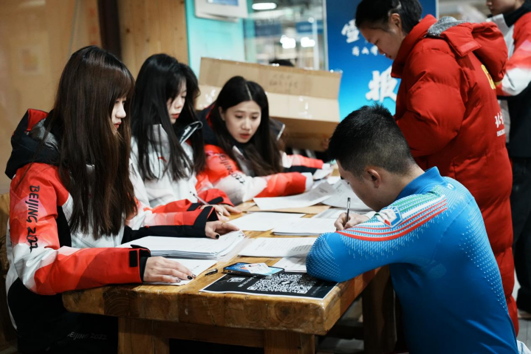 工作人员组织进行赛事报名