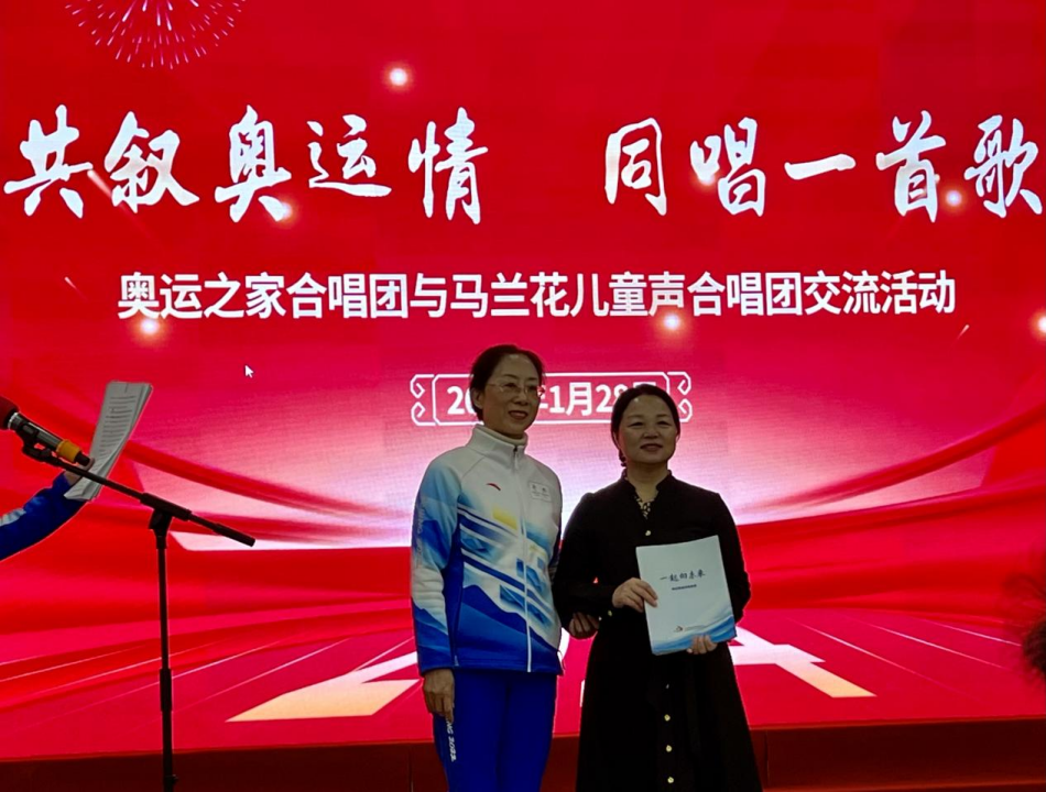 (奥运之家合唱团向马兰花合唱团赠送奥运歌曲曲谱)