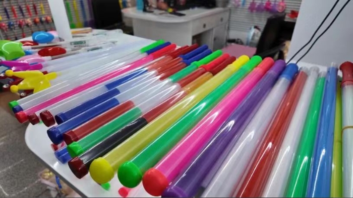 “这款的话,法国客人订得比较多,可以按照法国国旗的颜色来定做。”过惠萍拿着一根蓝白红配色的闪光棒说,前些天一位客户就定了100箱,这种闪光棒可以连续使用10个小时,完全可以满足观赛需求。