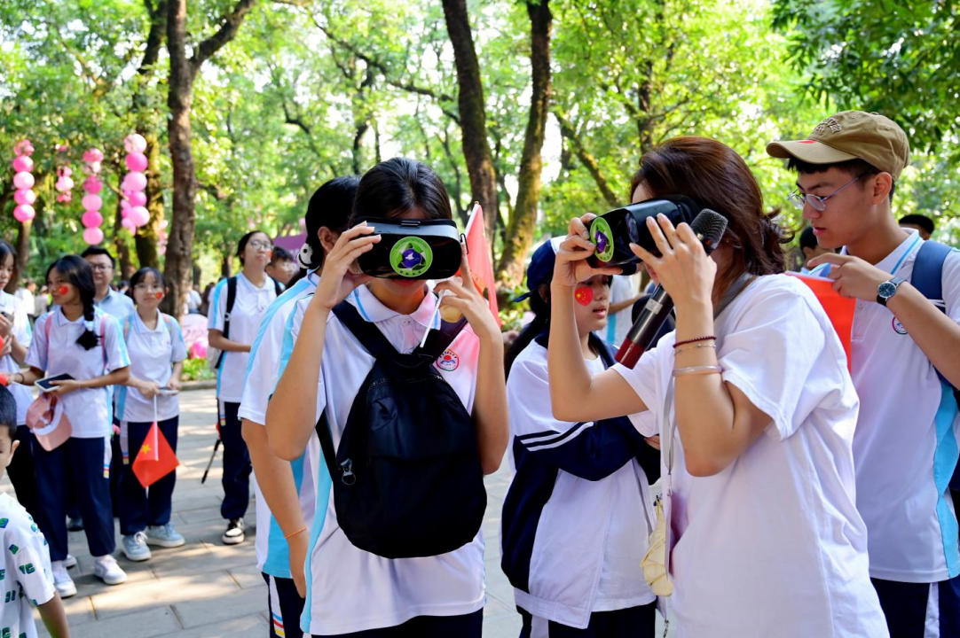 (学生现场用VR眼镜体验“双奥传承零碳未来”课件)