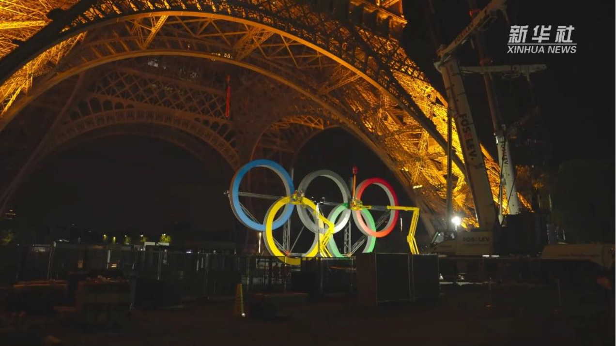 将奥运五环装饰在举世闻名的埃菲尔铁塔上是怎样的画面?巴黎奥组委7日向全世界给出了答案。