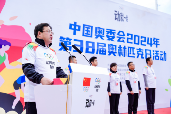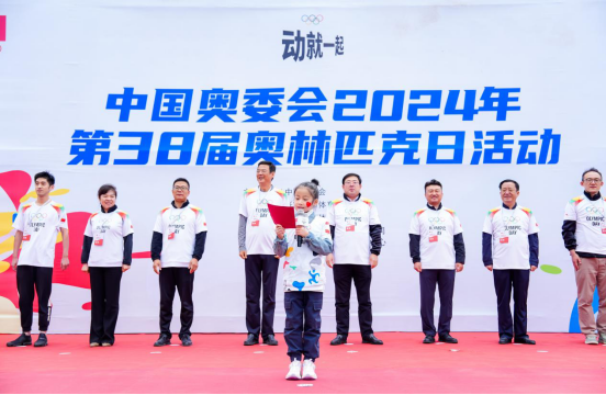 参与代表张沐恩小朋友宣读倡议书,倡议全体参与者共同践行奥林匹克格言,弘扬奥林匹克精神,传承北京冬奥精神,不分性别、不分年龄,无论体育技能的高低,积极参与到体育活动中来。