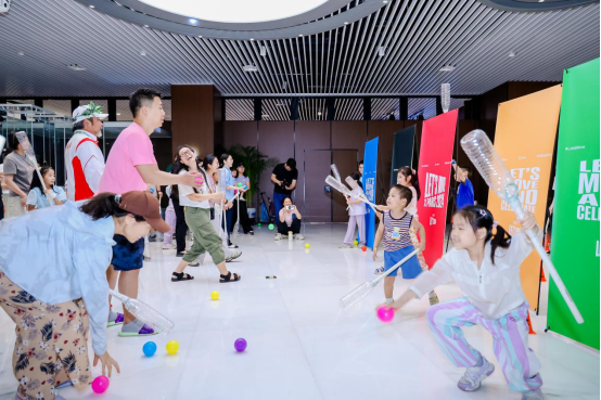 在家庭环保生活运动会活动中,家长与孩子们携手参与,共同体验了一场别具一格的家庭运动会。他们使用废弃矿泉水瓶、海洋球制作而成的运动器材开展趣味棒球、投掷火箭标枪等游戏竞赛,将环保与运动完美结合,孩子们也通过游戏过程对可持续生活理念有了更加直观的了解。