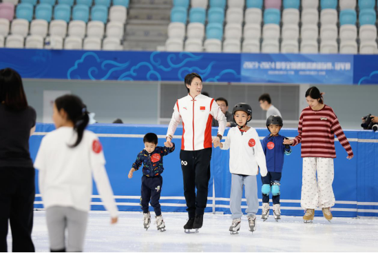 2024年6月23日,是第77个奥林匹克日,“爱滑冰冠军公益课”活动在国家速滑馆、庞清佟健冰上艺术中心及潞城全民健身中心滑冰馆同步举办。本次活动由北京奥运城市发展促进会主办,北京庞清佟健国际滑冰俱乐部承办,北京华体翼翔冰上运动文化有限公司协办,北京国家速滑馆经营有限责任公司、北京北投体育产业有限公司提供支持。北京奥运城市发展促进中心办公室主任皮亚明、北京国家速滑馆经营有限责任公司董事长金延、花样滑冰世界冠军佟健出席在国家速滑馆举办的活动开幕式。