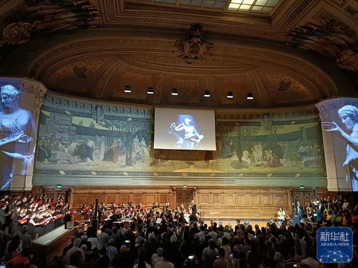 在索邦大学礼堂举办的纪念国际奥委会成立130周年活动现场(6月23日摄)。新华社发(金禹泽 摄)