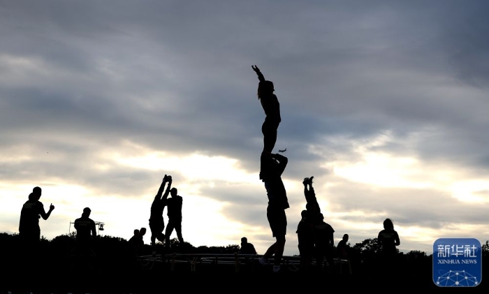 在巴黎奥运会闭幕式彩排活动现场,演员在表演开始前练习动作(7月3日摄)。新华社记者 曹灿 摄