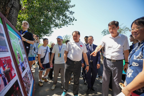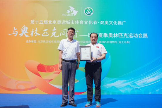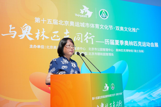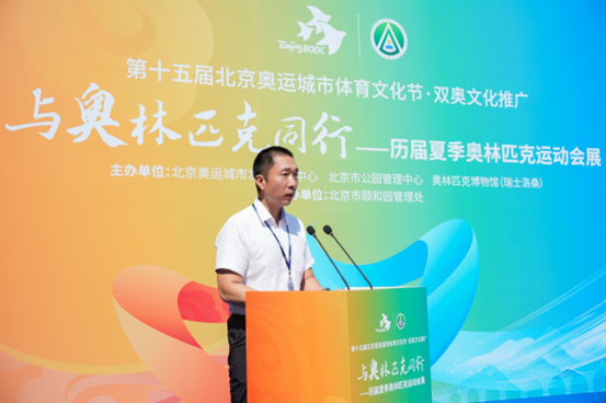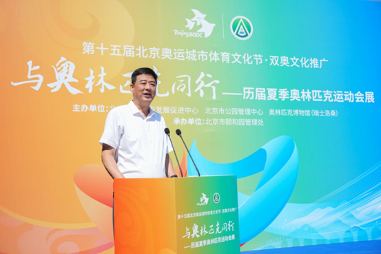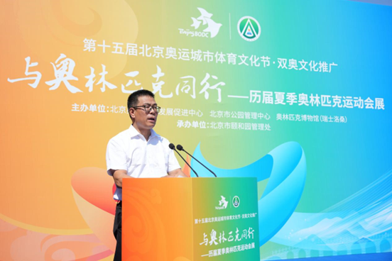 7月19日,为迎接巴黎奥运会召开,同时纪念中国奥运金牌“零的突破”40周年,由北京奥运城市发展促进中心联合北京市公园管理中心、奥林匹克博物馆(瑞士洛桑)共同主办,北京市颐和园管理处承办的“与奥林匹克同行——历届夏季奥林匹克运动会展”在颐和园东堤开幕。北京奥运城市发展促进中心党组书记、主任付晓辉向中国首枚奥运金牌获得者许海峰颁发“奥运精神传承推广大使”证书,并宣布展览开幕。法国驻华大使馆文化教育处教育合作专员卢哲巍代表法国驻华大使白玉堂致辞。北京奥运城市发展促进中心党组成员、副主任汲传排,北京市颐和园管理处党委书记、园长李晓光分别代表主办方和承办方致辞。北京市公园管理中心党委委员、副巡视员李爱兵出席。