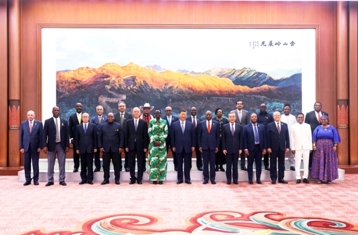 8月20日下午,国家主席习近平在北京人民大会堂集体会见出席全国人大加入各国议会联盟40周年纪念活动暨第六次发展中国家议员研讨班外方议会领导人。新华社记者 翟健岚 摄