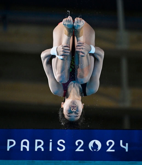 中国选手全红婵在巴黎奥运会跳水女子10米跳台决赛中(2024年8月6日摄)。新华社记者 王鹏 摄