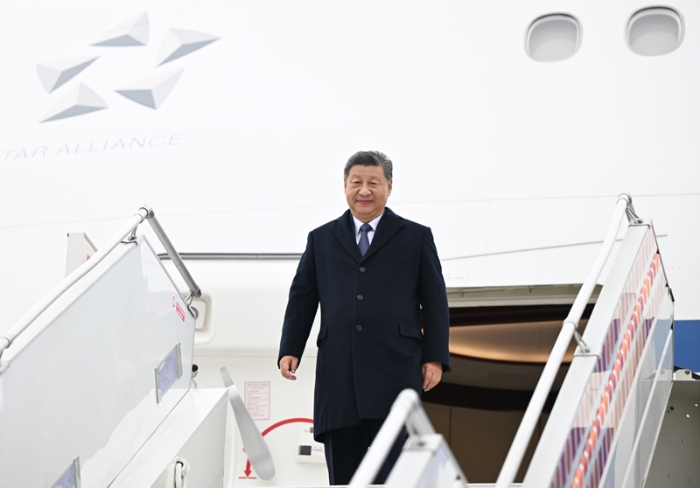 当地时间10月22日中午,国家主席习近平乘专机抵达喀山,应俄罗斯联邦总统普京邀请,出席金砖国家领导人第十六次会晤。新华社记者 谢环驰 摄
