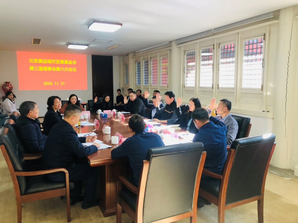 2024年11月21日,北京奥运城市发展基金会召开第三届理事会第六次会议。北京奥运城市发展促进会常务副会长韩子荣,北京奥运城市发展基金会新当选理事长李拥军,北京奥运城市发展促进中心党组成员、副主任夏日红,以及北京市体育总会秘书长张国成,北京市社会组织管理中心基金会处处长唐晓明出席。北京奥运城市发展基金会秘书长魏登范主持会议。