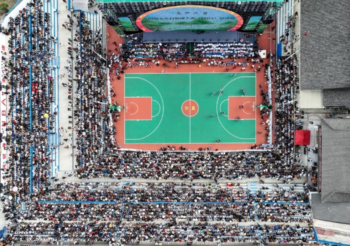 2023的全国和美乡村篮球大赛(村BA)总决赛现场(无人机照片)