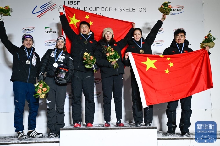 当地时间1月3日,在德国温特贝格进行的2024-2025赛季国际雪车联合会钢架雪车世界杯混合团体比赛中,中国组合赵丹/林勤炜以2分00秒87的成绩获得冠军。这是中国钢架雪车混合团体项目的首枚世界杯金牌。