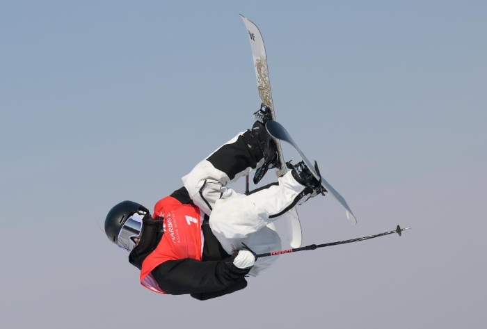 2025年2月11日,中国选手刘梦婷在比赛中。当日,第九届亚冬会自由式滑雪女子坡面障碍技巧决赛在亚布力举行。新华社记者 杨冠宇 摄