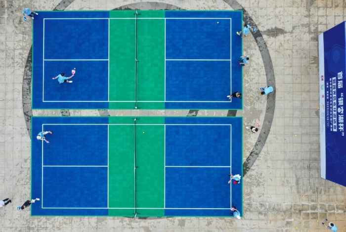 资料图:体验者在匹克球比赛场地练习。新华社记者 杨磊 摄