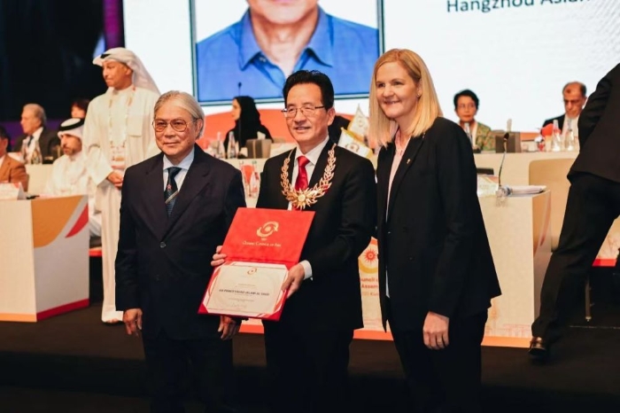 代表大会上,国际奥委会候任主席柯丝蒂·考文垂、亚奥理事会第一副主席霍震霆为杭州亚组委执行秘书长、杭州市副市长陈卫强颁发金松针奖章和证书,表彰其作出的贡献。