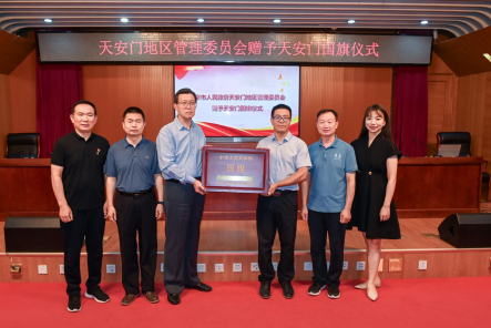 8月1日,北京市人民政府天安门地区管理委员会隆重举行赠旗仪式,北京奥运城市发展促进会获赠天安门国旗。北京市人民政府天安门地区管理委员会党组成员、副主任(正局长级)姚辉和北京奥运城市发展促进会副秘书长,北京奥运城市发展促进中心党组成员、副主任汲传排出席赠旗仪式。