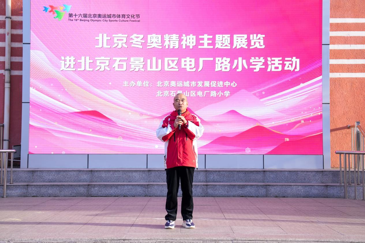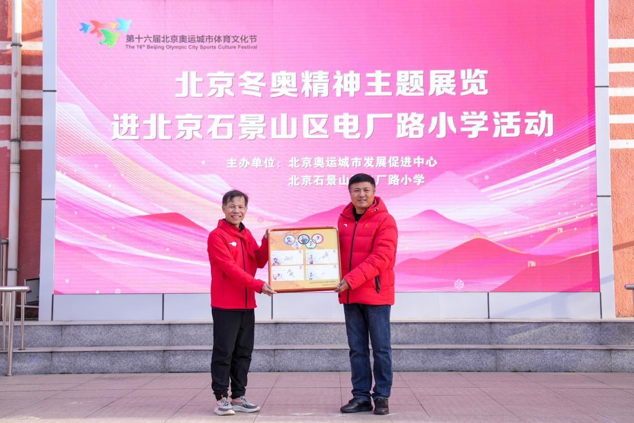为大力弘扬北京冬奥精神,传播“双奥文化”,让青少年感悟“胸怀大局、自信开放、迎难而上、追求卓越、共创未来”的北京冬奥精神,近日,第十六届北京奥运城市体育文化节“双奥文化”推广项目之北京冬奥精神主题展览进校园活动分别在北京市朝阳外国语学校、石景山区电厂路小学举办。