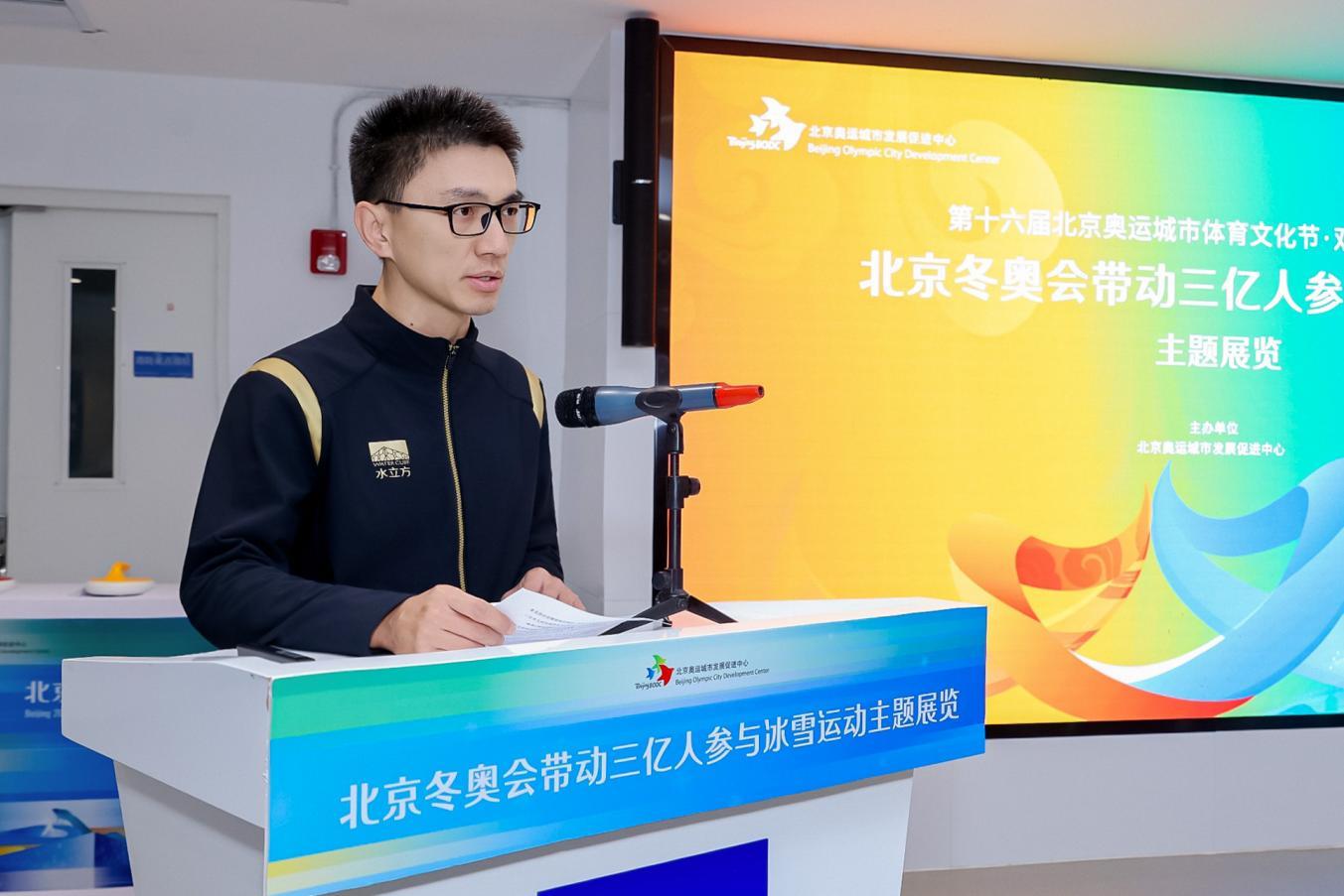 11月14日,由北京奥运城市发展促进中心主办的第十六届北京奥运城市体育文化节“双奥”文化推广系列活动“北京冬奥会带动三亿人参与冰雪运动”主题展览在国家游泳中心冰上运动中心开幕。