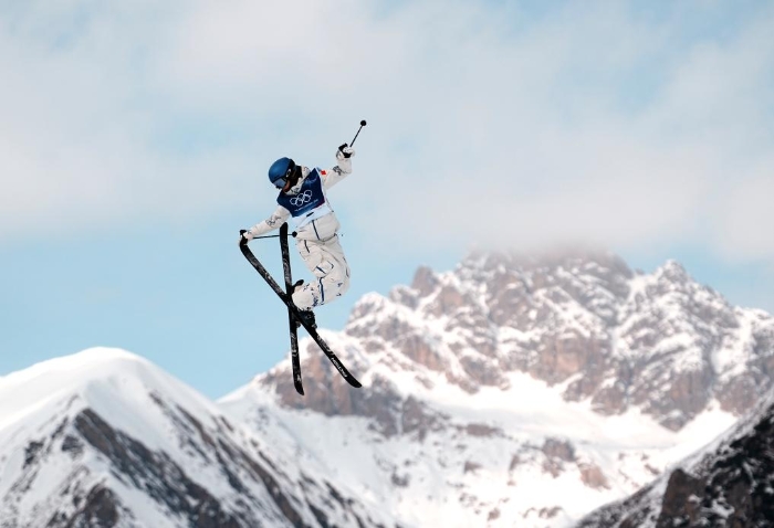 2月9日,中国选手谷爱凌在比赛中。新华社记者 胡超 摄