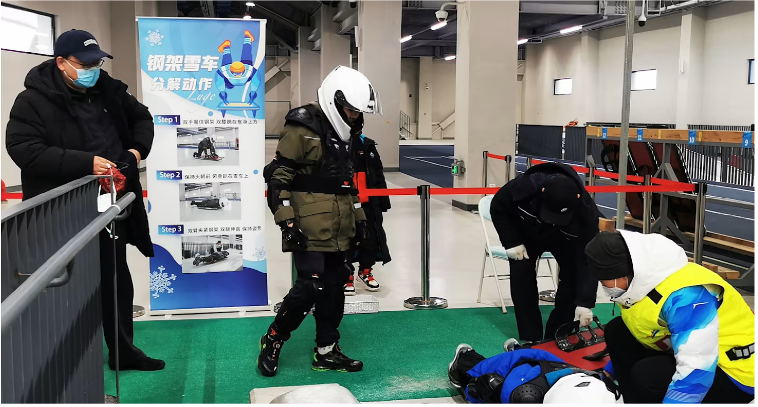 © 北京奥运城市发展促进会 -游客在延庆国家雪车雪橇中心体验雪车雪橇模拟项目