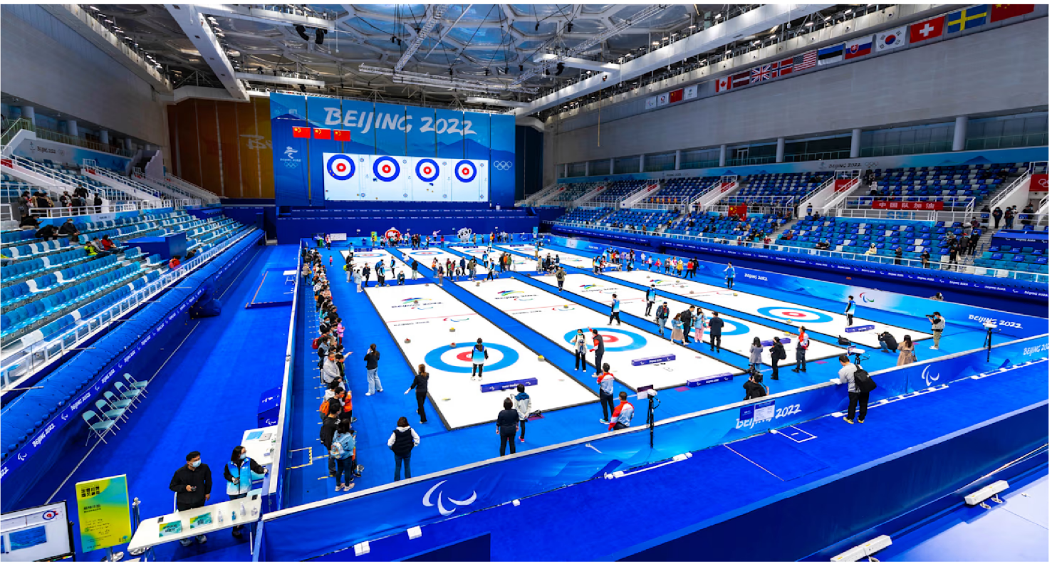 国家游泳中心在2008年北京奥运期间被称作“水立方”,北京冬奥期间用于举办冰壶比赛时则被称作“冰立方”。其是一个多功能场馆,可在游泳和冰上运动之间转换。如此灵活得益于在游泳池上方安装了预制钢架和混凝土板,并覆盖保温层与防水层。冰场则在其之上实现。整个转换过程大概需要20天,且设备可重复使用,从而极大降低了成本。