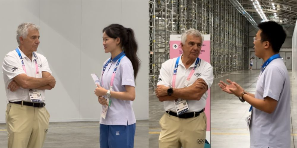 IOC Vice-President Juan Antonio Samaranch Engages with Chinese Interns in Paris 2024 International Broadcast Centre