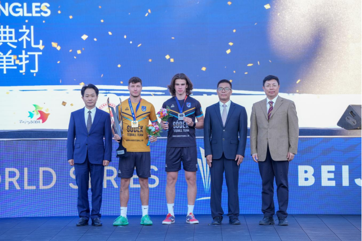 Ji Chuanpai, Deputy Secretary-General of BODA, Zhang Hua, Level-II Councillor of the Beijing Municipal Bureau of Sports, and Yang Ping, President of the Beijing Teqball Association, gave awards to the men’s singles champion and runner-up.