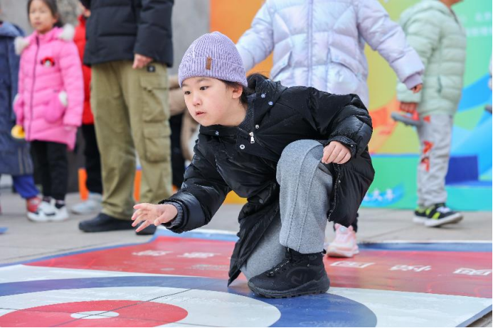 During the competition, the children raced to slide the stones towards the target area, and the cheers from the audience came in waves, bringing the dual Olympic cultural event to a climax.