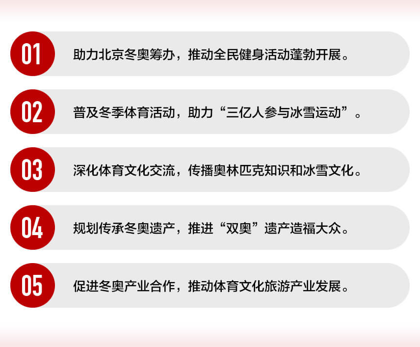 围绕北京冬奥会、冬残奥会筹办的中心任务,做好奥运遗产传承工作,实现以下目标: