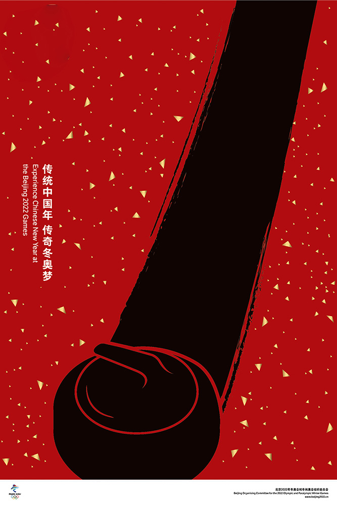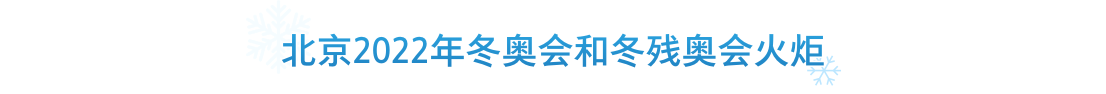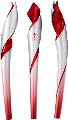 火炬外形极具动感和活力,颜色为银色与红色,象征冰火相约,激情飞扬,照亮冰雪,温暖世界。火炬自下而上,从寓示吉祥的祥云纹样逐渐过渡到剪纸风格的雪花图案,旋转上升,如丝带飘舞,最后呈现为飞扬的火焰。红色线条随火炬转动而上下贯通,象征着激情的冰雪赛道,也代表着永恒的火种,光明向上,表达了人类生生不息、向往和平、追求卓越的期望和奥林匹克运动的力量。