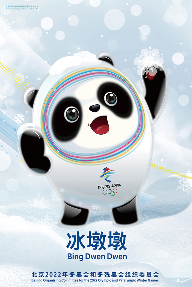冰,象征纯洁、坚强,是冬奥会的特点。 墩墩,意喻敦厚、健康、活泼、可爱,契合熊猫的整体形象,象征着冬奥会运动员强壮的身体、坚韧的意志和鼓舞人心的奥林匹克精神。