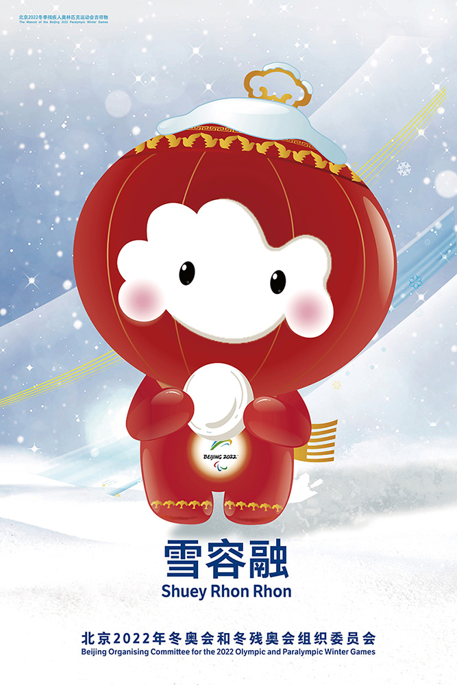 雪,象征洁白、美丽,是冰雪运动的特点。 容,意喻包容、宽容、交流互鉴。 融,意喻融合、温暖,相知相融。 容融,表达了世界文明交流互鉴、和谐发 展的理念,体现了通过残奥运动创造一个更加包容的世界和构建人类命运共同体的美好愿景。