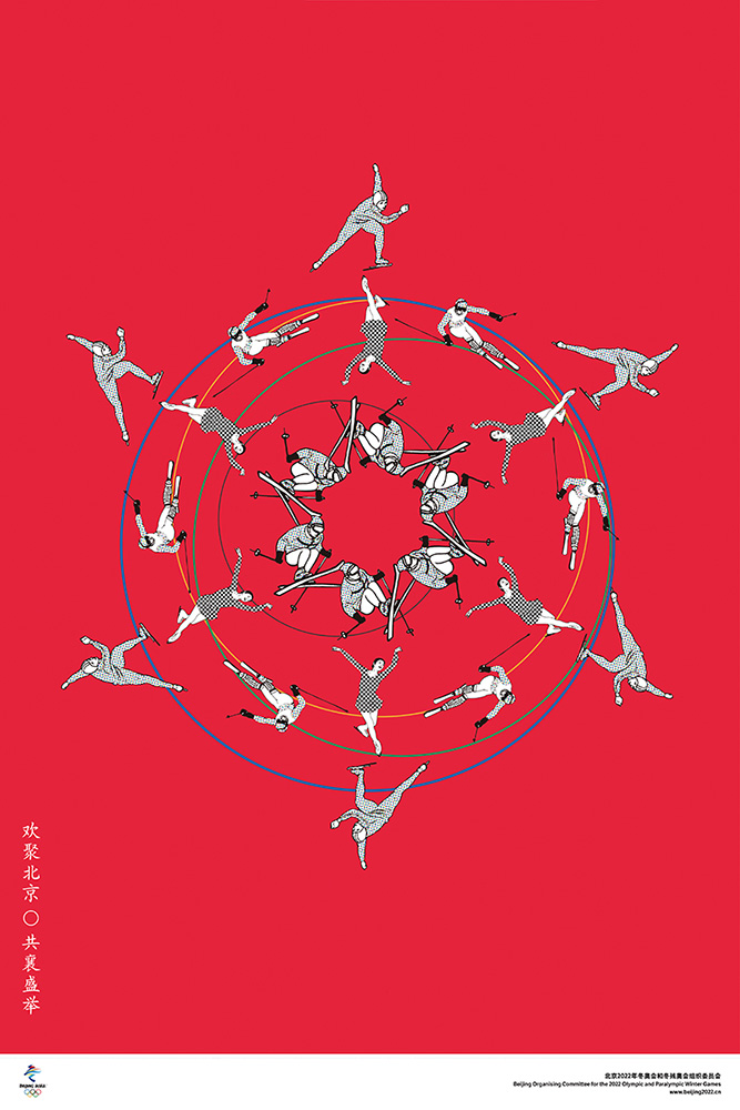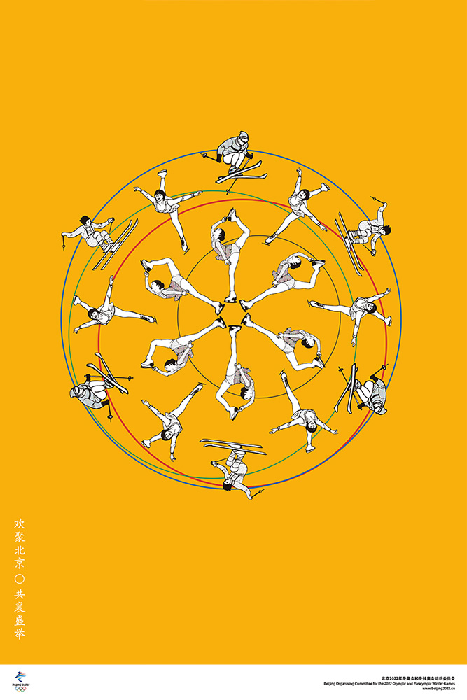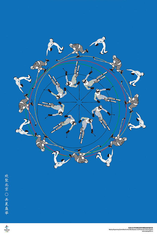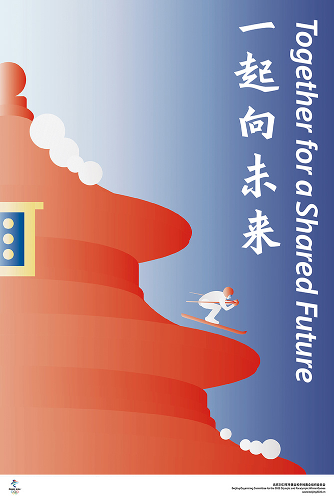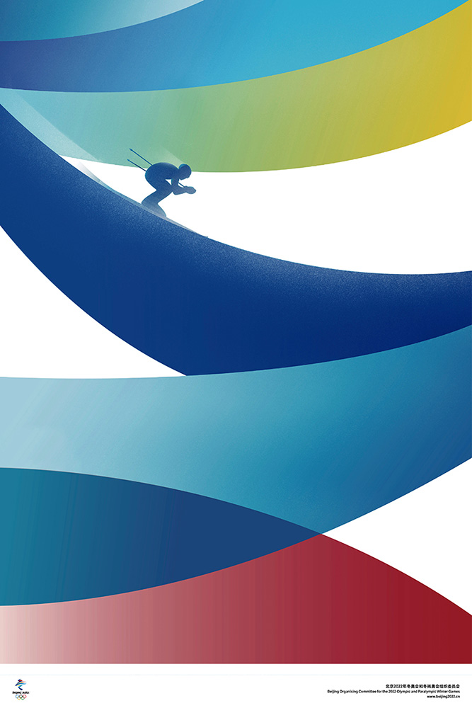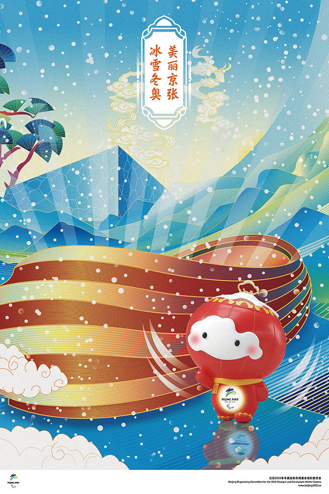 北京冬奥会会徽“冬梦”将中国传统文化和奥林匹克元素巧妙结合。她以汉字“冬”为灵感来源,图形上半部分展现滑冰运动员的造型,下半部分表现滑雪运动员的英姿。中间舞动的线条流畅且充满韵律,代表举办地起伏的山峦、赛场、冰雪滑道和节日飘舞的丝带,为会徽增添了节日欢庆的视觉感受,也象征着北京冬奥会将在中国春节期间举行。会徽运用中国书法的艺术形态,将厚重的东方文化底蕴与国际化的现代风格融为一体,呈现出新时代中国的新形象、新梦想。中国为办好北京冬奥会,圆冬奥之梦,圆体育强国之梦,正不懈努力。实现“三亿人参与冰雪运动”目标、推动世界冰雪运动发展、为国际奥林匹克运动做出新贡献是中国一贯的目标和美好追求。“BEIJING 2022”印鉴在形态上汲取了中国书法与剪纸的特点,增强了字体的文化内涵和表现力,也体现了与会徽图形的整体感和统一性。