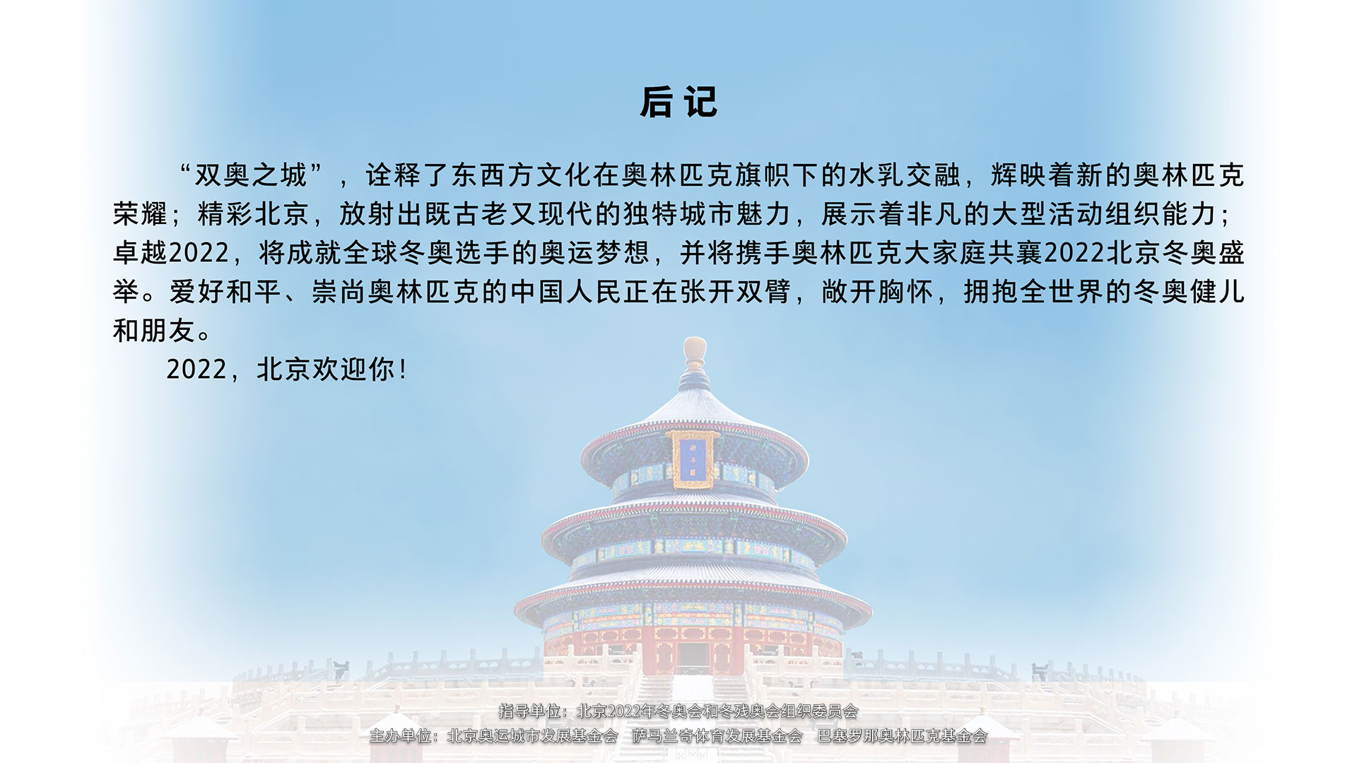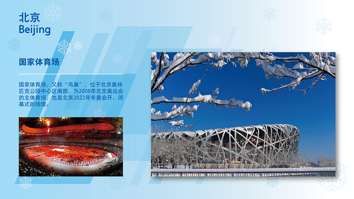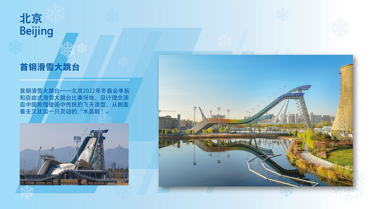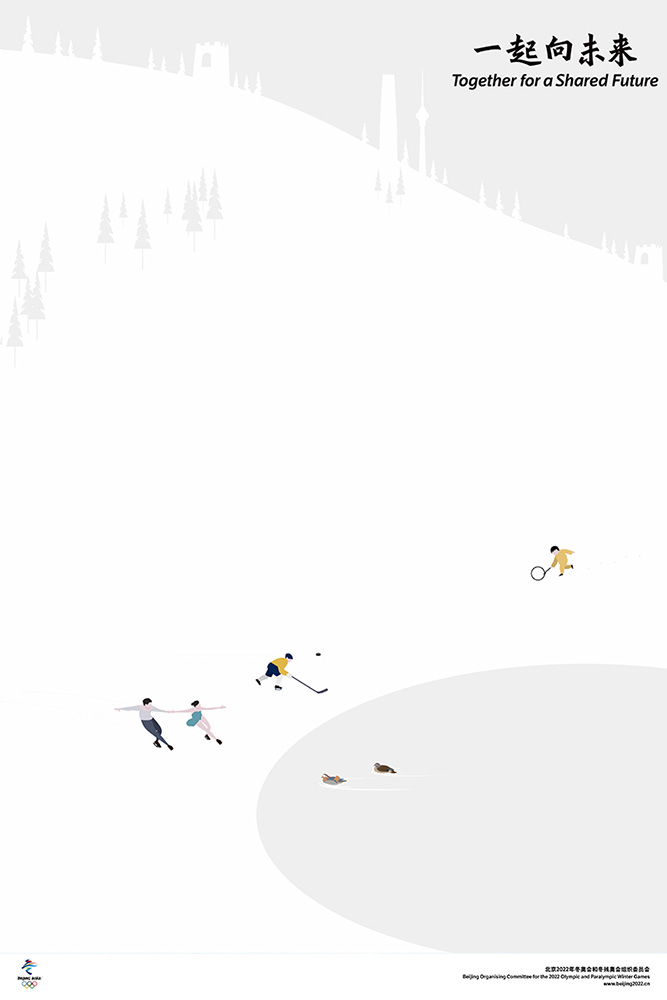 北京冬奥会会徽“冬梦”将中国传统文化和奥林匹克元素巧妙结合。她以汉字“冬”为灵感来源,图形上半部分展现滑冰运动员的造型,下半部分表现滑雪运动员的英姿。中间舞动的线条流畅且充满韵律,代表举办地起伏的山峦、赛场、冰雪滑道和节日飘舞的丝带,为会徽增添了节日欢庆的视觉感受,也象征着北京冬奥会将在中国春节期间举行。会徽运用中国书法的艺术形态,将厚重的东方文化底蕴与国际化的现代风格融为一体,呈现出新时代中国的新形象、新梦想。中国为办好北京冬奥会,圆冬奥之梦,圆体育强国之梦,正不懈努力。实现“三亿人参与冰雪运动”目标、推动世界冰雪运动发展、为国际奥林匹克运动做出新贡献是中国一贯的目标和美好追求。“BEIJING 2022”印鉴在形态上汲取了中国书法与剪纸的特点,增强了字体的文化内涵和表现力,也体现了与会徽图形的整体感和统一性。