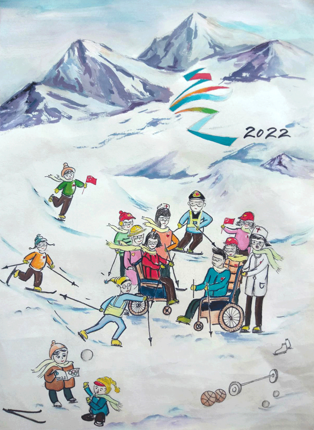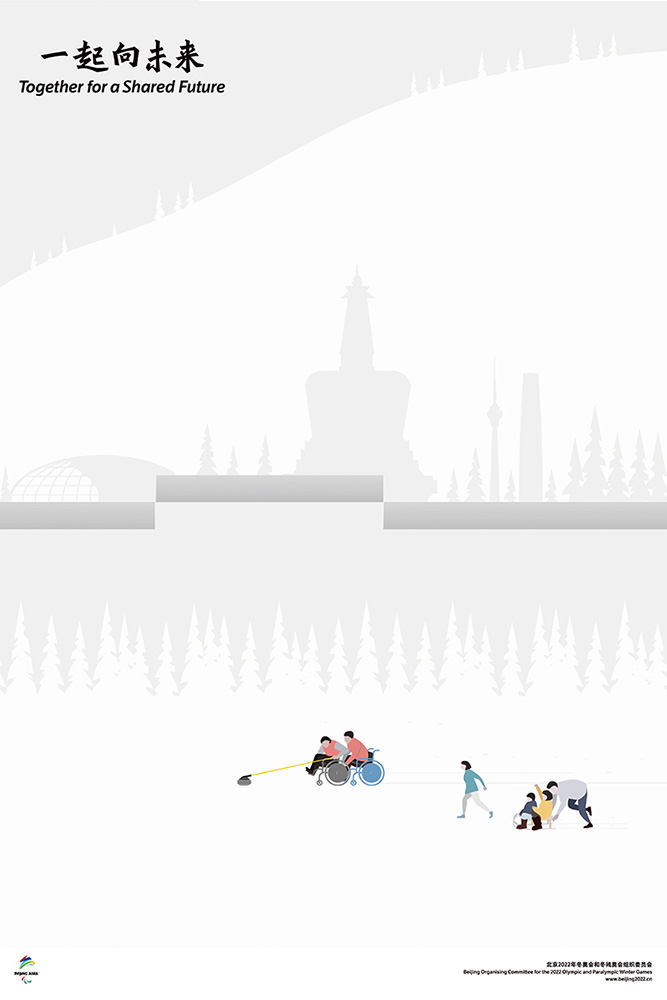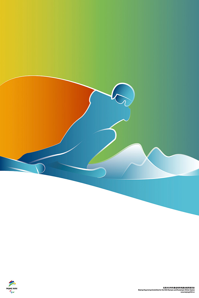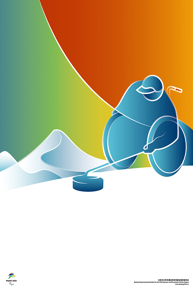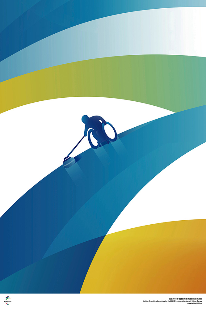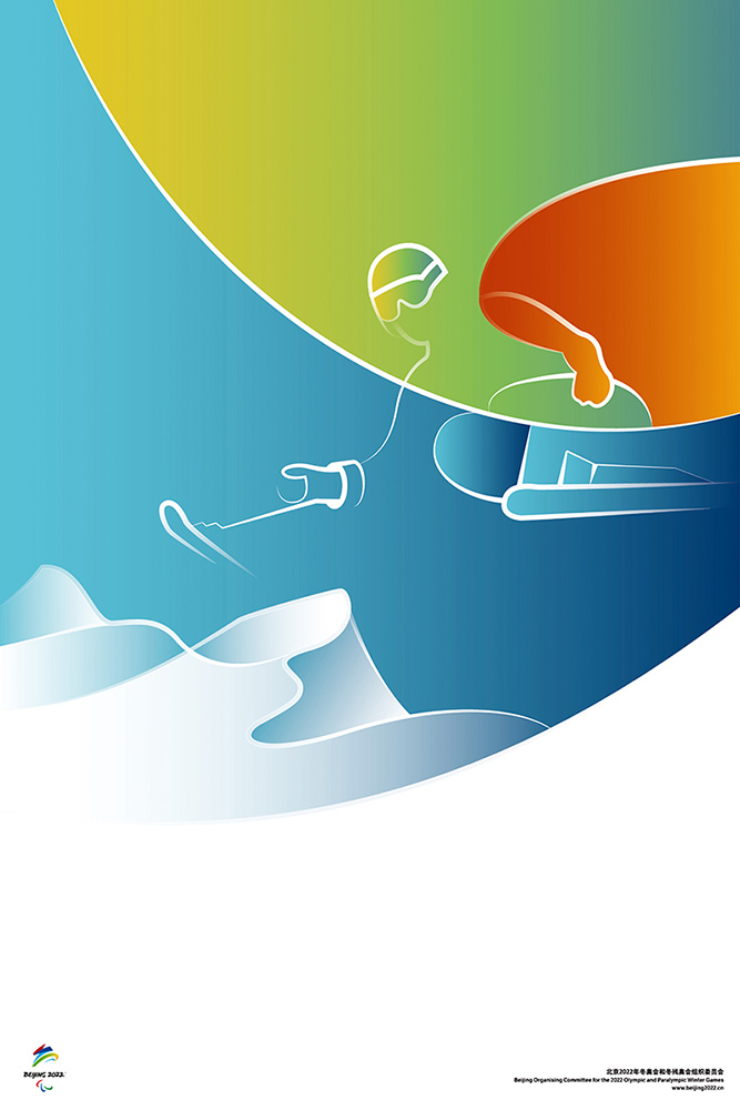 北京冬残奥会会徽设计秉承展现举办地文化、体现以运动员为中心的理念,将中国书法艺术与冬残奥会体育运动特征结合起来。设计展现了汉字“飞”的动感和力度,巧妙地幻化成一个向前滑行、冲向胜利的运动员,同时形象化地表达了轮椅等冬残奥会特殊运动器械形态。上半部分线条刚劲曲折,下半部分柔美圆润,寓意运动员经过顽强拼搏、历经坎坷最终达到目标获得圆满成功。会徽展现了运动员不断飞跃,超越自我,奋力拼搏,激励世界的冬残奥精神。会徽图形整体充满了昂扬向上之激情,奋进飞跃之动感,色彩丰富,构图完美,象征并激发运动员以坚强的意志作为精神的翅膀,在冬残奥赛场上放飞青春梦想!
